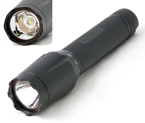 High intensity 3Watt 200lumen CREE LED bulb. Anodized aluminum alloy bodyRotary head adjusts the light beam to 9 different levels of lighting and two strobe modes(slow and fast)